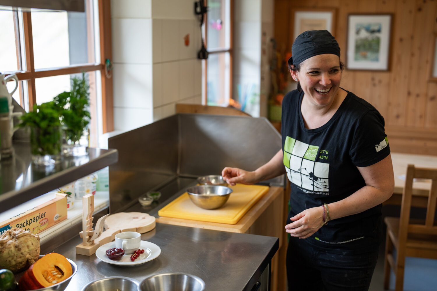 Nach einem anstrengenden Aufstieg oder einer lohnenden Tour muss man auch wieder zu Kräften kommen. Dass es allen gut schmeckt und das Essen frisch zubereitet auf den Tisch kommt, dafür sorgen Johanna und Niko mit ihrer Familie und dem Hütten-Team.